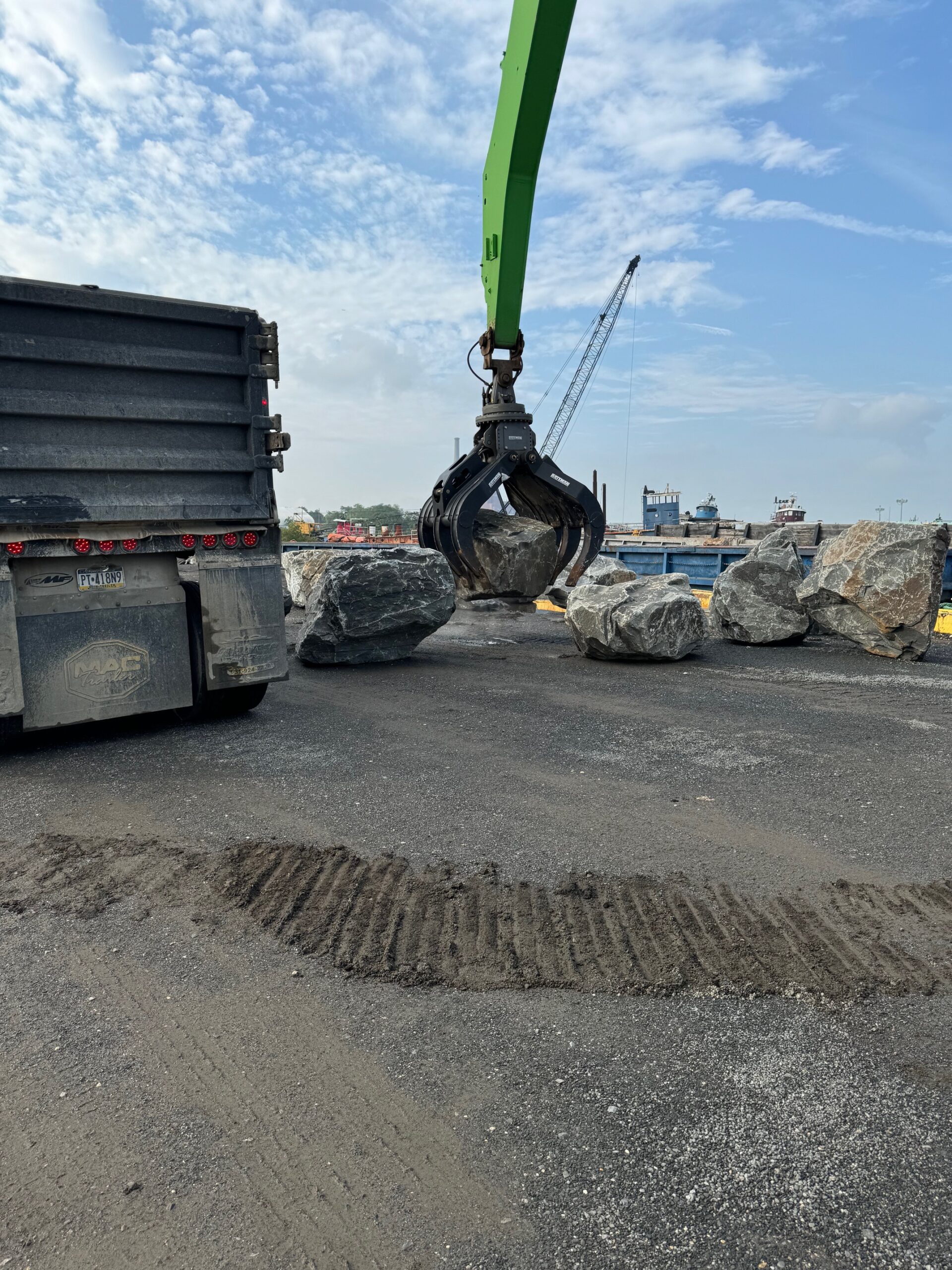 Our site is designed for your convenience and efficiency. With a 680ft dock access, rail, and direct highway access via the various bridges on Staten Island, we make it easy for you to drop off your construction debris for recycling and pick up our multiple aggregates. Our competitive pricing on Crushed Stone, 1/4″Fines, Brick/Block, Concrete, and Clean Soil on Staten Island is an added bonus.